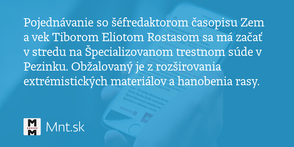 Podľa obžaloby v máji 2017 zverejnil v časopise článok s názvom „klin židov medzi slovanmi", v ktorom uviedol citácie údajných myšlienok rôznych osobností slovenskej histórie, v ktorých títo vyjadrovali negatívne postoje k židovskej komunite. Ba dokonca zákony, ktorým sme dovolili, aby nad nami vládli, by nás priviedli až k samotnému vylúčeniu zo spoločnosti. Tie dosiaľ nezistený páchateľ, vystupujúci po menom tibor eliot rostás, využil podľa prokuratúry tak, že čitateľovi predkladá tvrdenia, že aj v súčasnej dobe sú pôvodom zlej spoločenskej situácie zásahy židovskej komunity, ktorá. Dôvodom sú historické citáty v článku s názvom „klin židov medzi slovanmi". Uvádzal citácie na adresu židov, ktoré pripisuje historickým osobnostiam.